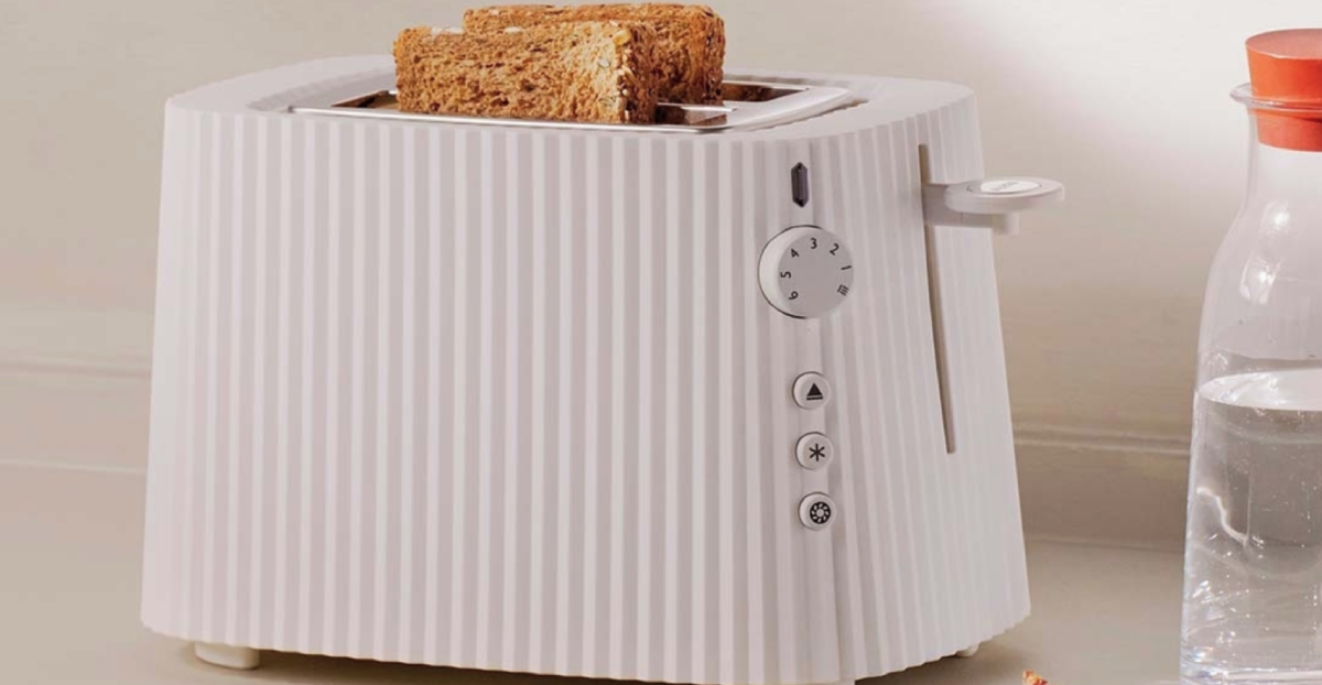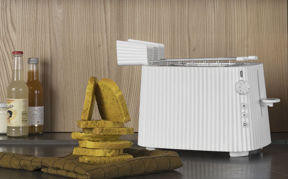 Der Toaster aus der Plisse-Kollektion vereint elegantes Design aus thermoplastischem Harz mit praktischer Funktionalität und fügt sich durch seine kompakte Größe stilvoll in jede Küche ein.