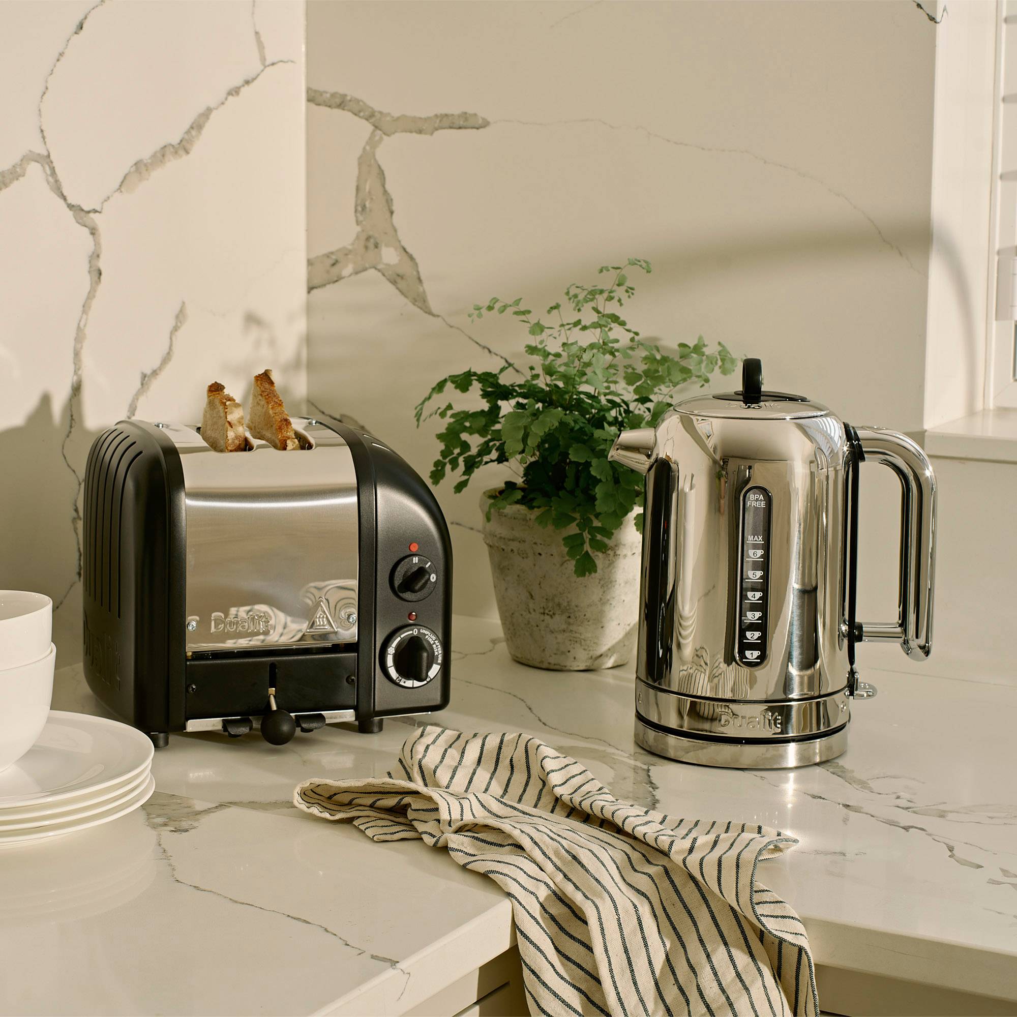 Der Dualit Classic Toaster kombiniert zeitloses Retro-Design mit moderner Technik und wird in Großbritannien von Hand gefertigt.
