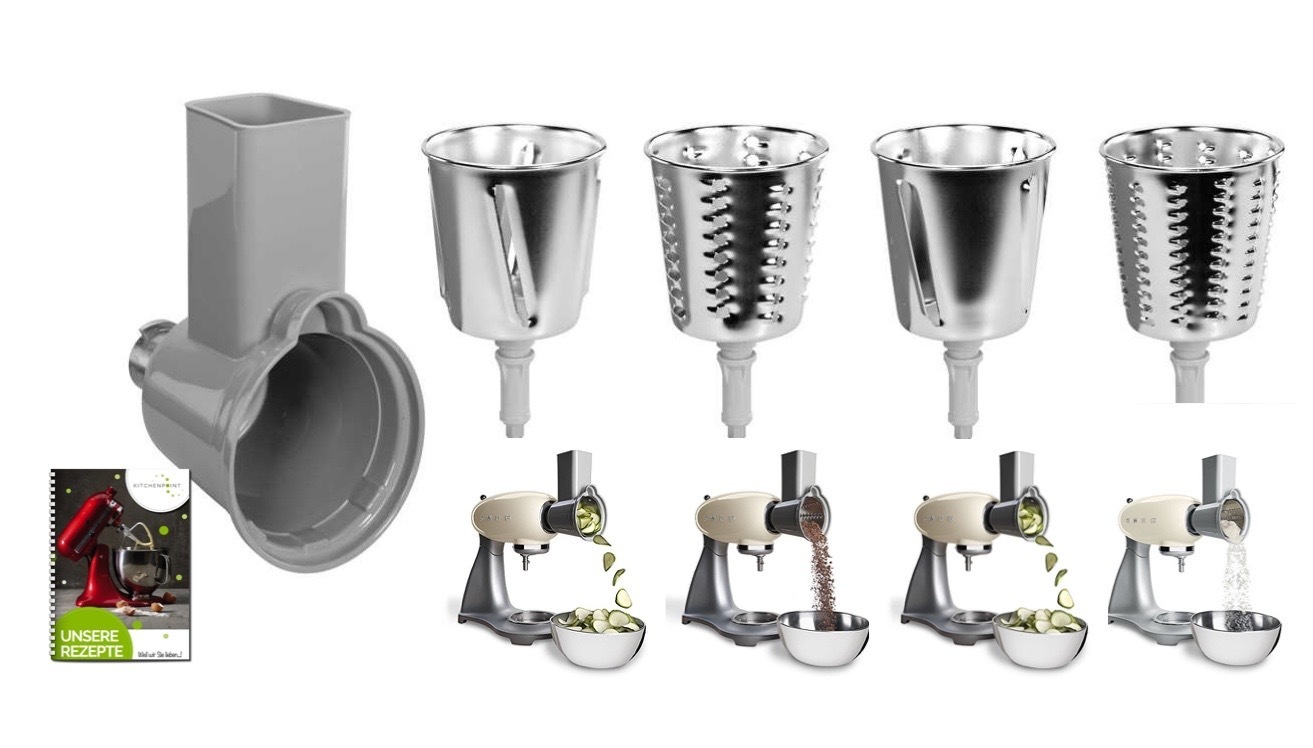 - Gemüseschneider SMSG01 mit 4 Trommeln für dicke und dünne Scheiben, grobe und feine Raspel