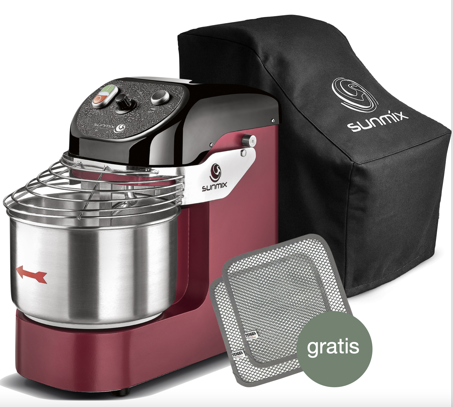 Sunmix EASY 6 Spiralkneter Rot - inkl. Abdeckhaube und gratis 2 TEIGER Teig - Reinigungstücher