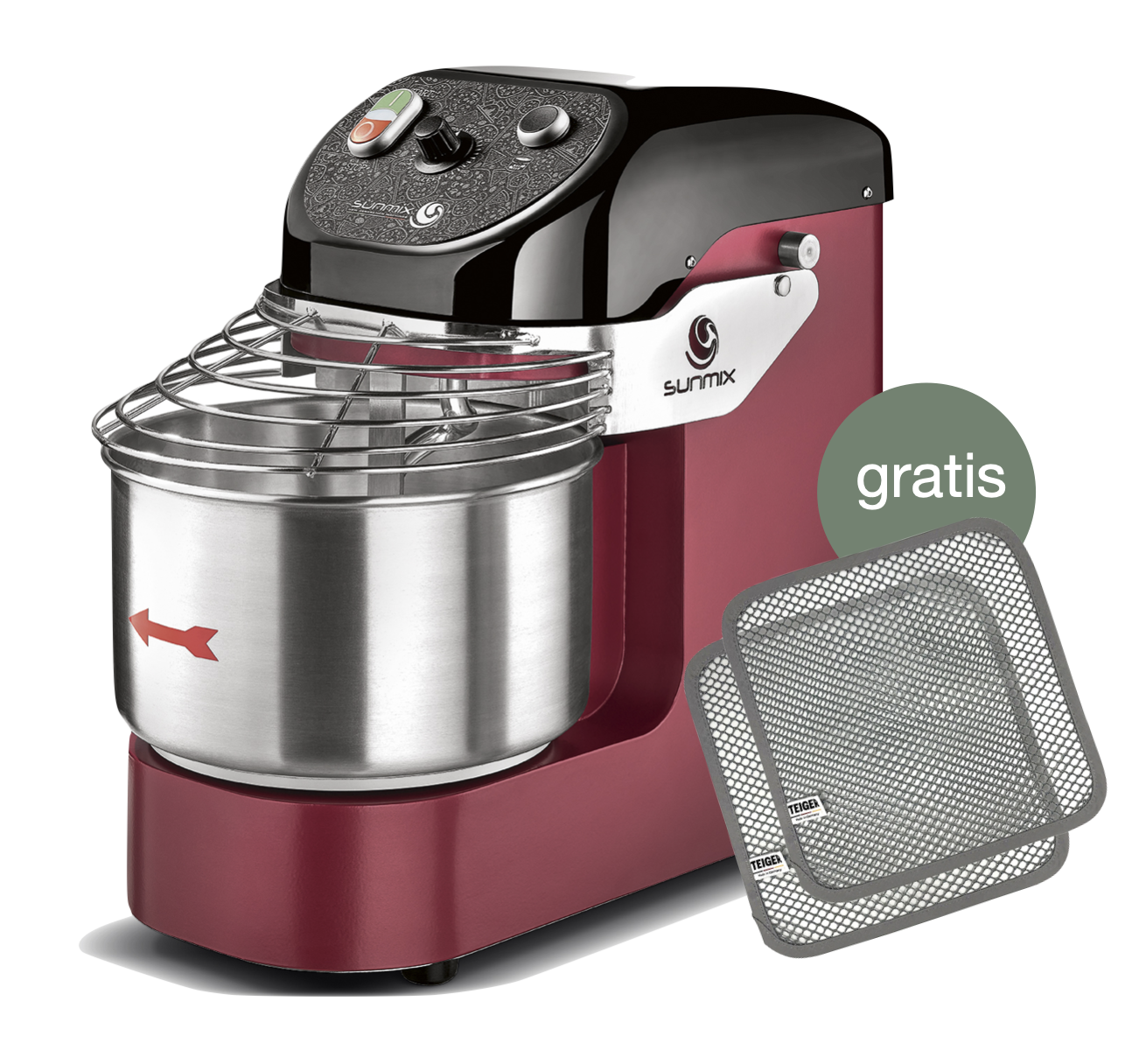 Sunmix EASY 6 Spiralkneter Rot - inkl. gratis 2 TEIGER Teig - Reinigungstücher