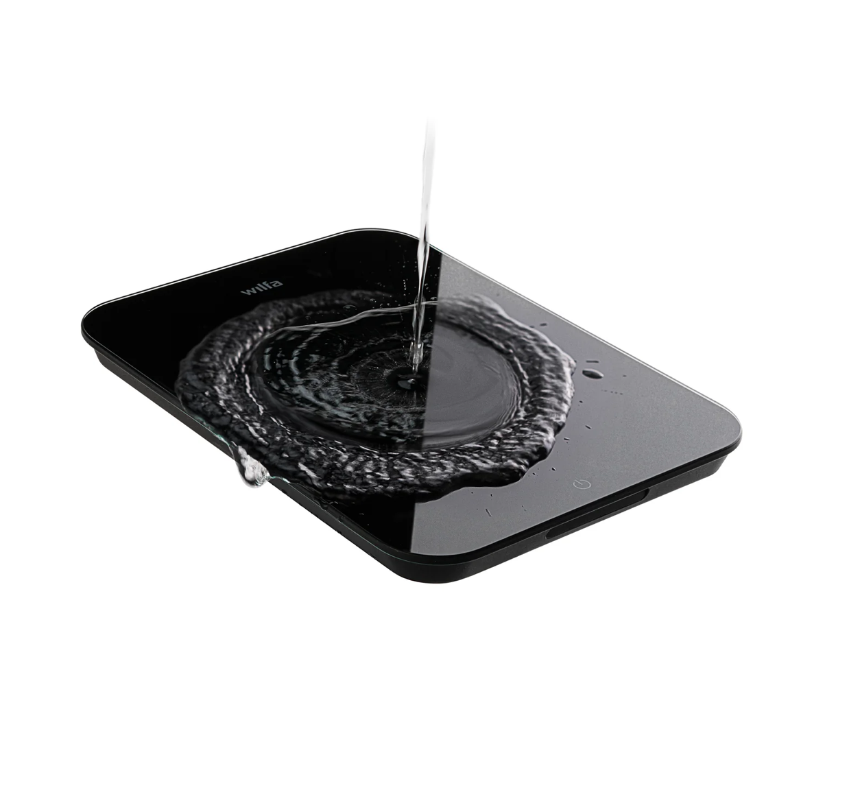 Die Wilfa Max Waage besitzt ein hohes Fassungsvermögen von 1g bis hin zu 10kg und lässt sich mit USB-C aufladen.