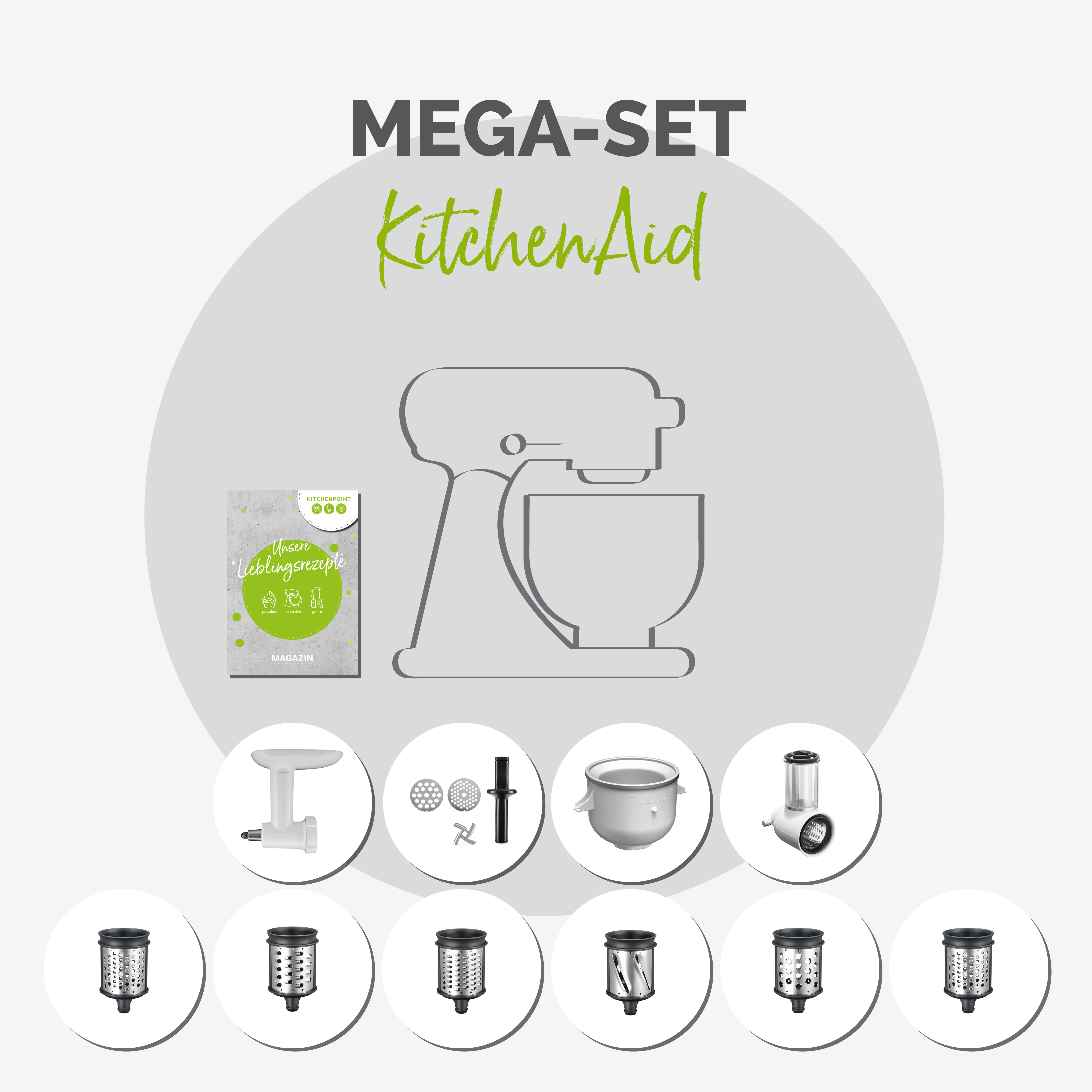 Schneidetrommel, grobe Raspeltrommel, mittlere Raspeltrommel - Zusatztrommeln 5KSMEMVSA für Gemüseschneider